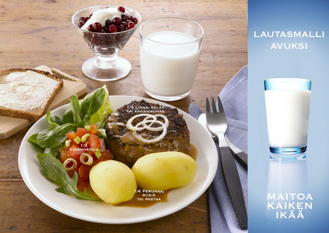 Terveellisen aterian koostamista on hyvä havainnollistaa lautasmallin avulla.