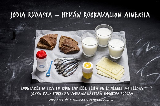 Jodia saa maitovalmisteista, kalasta ja jodioidusta suolasta. Kuva: Valtion ravitsemusneuvottelukunta