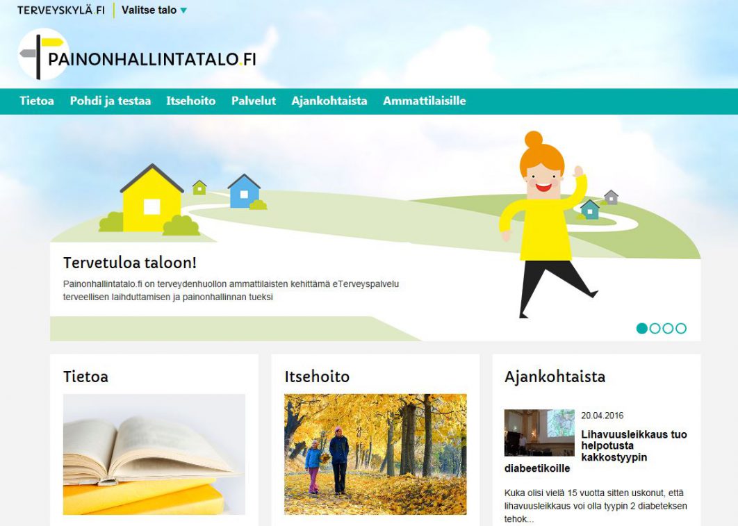 Painonhallintatalo.fi -verkkopalvelussa on painavaa asiaa terveellisen laihduttamisen ja painonhallinnan tueksi. Sen ovat kehittäneet terveydenhuollon ammattilaiset. Laajoilla sivuilla on tietoa paitsi kuluttajille myös ammattilaisille. Painonhallintatalo avattiin helmikuussa 2016.