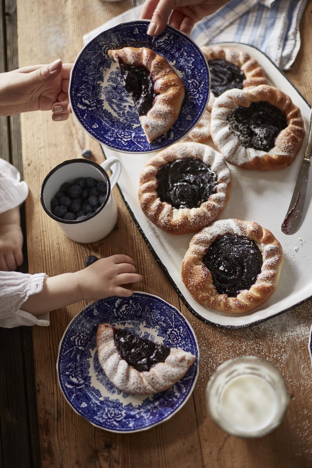 Kesällä on monta hyvää syytä syödä yhdessä. Kutsu kaverit vaikka nauttimaan tuoretta mustikkapiirakkaa maitolasillisen kera. Kuva: ELO-säätiö