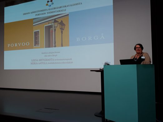 Ravitsemussuunnittelija Leena Metsäranta esitteli Porvoon mallia Valtakunnallisia Ravitsemuspäivillä lokakuussa Helsingissä. Kuva: Kirsi Englund