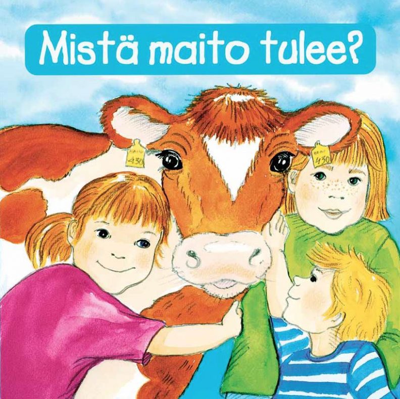 Moni alakoululainen ei tiedä, mistä maito tulee. Kuvassa Maito ja Terveys ry:n esite ”Mistä maito tulee?”