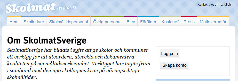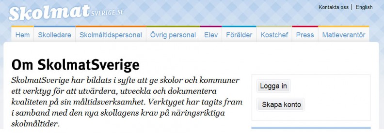 Ruotsissa otetaan käyttöön kevään 2012 aikana valtakunnallinen nettipohjainen työkalu, jonka avulla koulut ja kunnat voivat dokumentoida, arvioida ja kehittää kouluruoan laatua. Dokumentointia tarvitaan, koska uuden koululain (2010:800) mukaan kouluruoan on oltava ravitsevaa. Laki astui voimaan 1.7.2011. Jotta koulu voi osoittaa ravitsevuuden, siihen tarvitaan tietoa ruoan ravintoainesisällöstä. Tällä hetkellä vain joka neljäs kunta tekee ravintoainelaskelmia kaikesta koulussa tarjottavasta ruoasta.