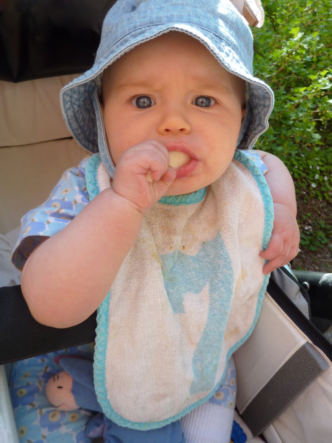 Vauvalle voi antaa pehmeitä hedelmiä isoina paloina sormin syötäväksi.
