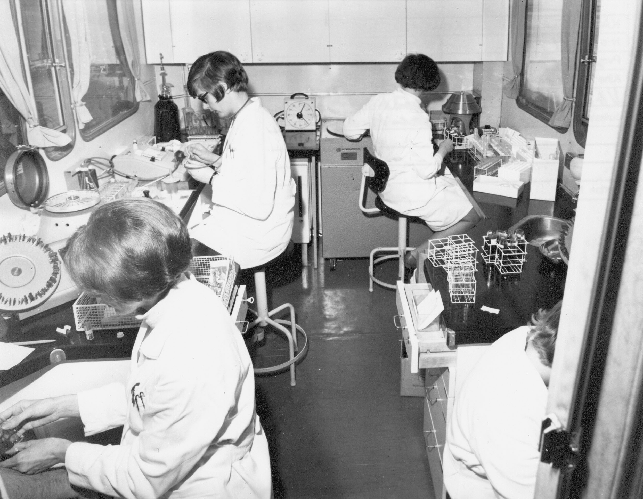 Laboratorio-osasto toiminnassa Vammalassa 20.3.1967. Kuva kirjasta Autoklinikka.