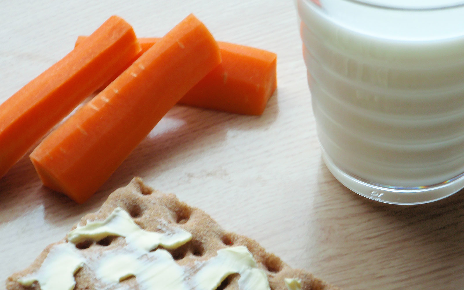 Suunniteltu kouluateria sisältää pääruuan lisäksi maitoa, leipää ja salaattia/tuoreannoksen. Syökö lapsesi nämä kaikki? Kuva TL