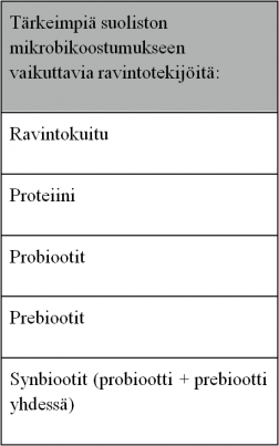 Tutkimusten perusteella tiedetään, että esimerkiksi vähän hiilihydraatteja, mutta runsaasti proteiineja sisältävä ruokavalio vähentää suoliston bifidobakteerien määrää.